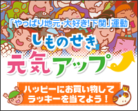 本年度は、この運動の一環として全市民が参加できる「しものせき元気アップ事業」を実施します。平成24年8月1日から10月31日までの3ヶ月間、市内全域で小売業のみでなく飲食業、建設業、サービス業などが加盟事業所として参加し、運動を盛り上げます。