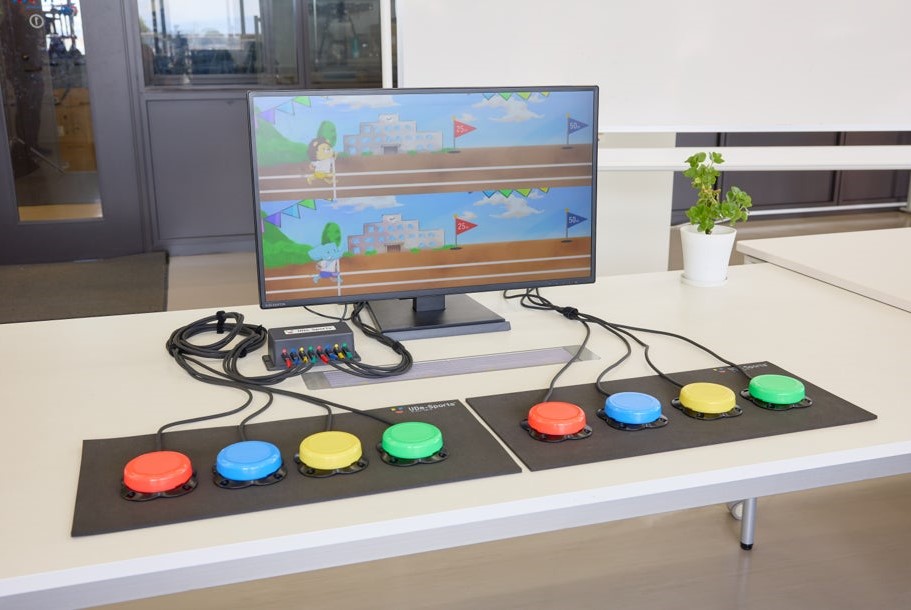 UDe-スポーツ(ユニバーサルデザイン・イースポーツ)とは、赤・黄・青・緑の4つのボタンで誰もが簡単に楽しめ、笑顔になれるeスポーツです。年齢や障がいの有無などに関係なく、誰もが参加でき、世界中の仲間ともプレイできます!